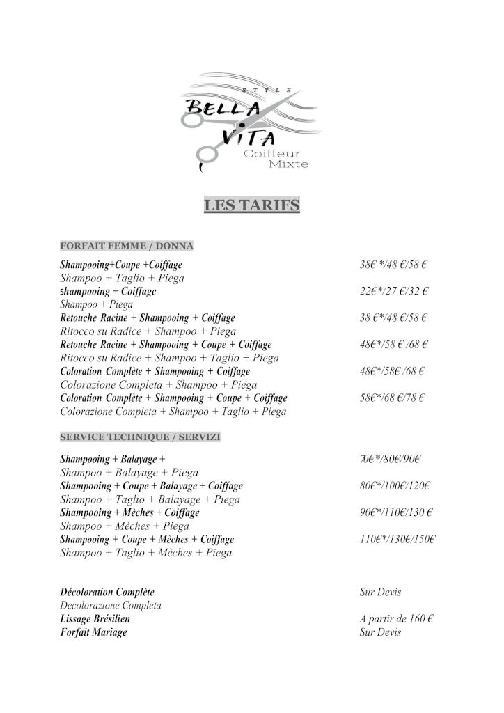 Le Tarifs :